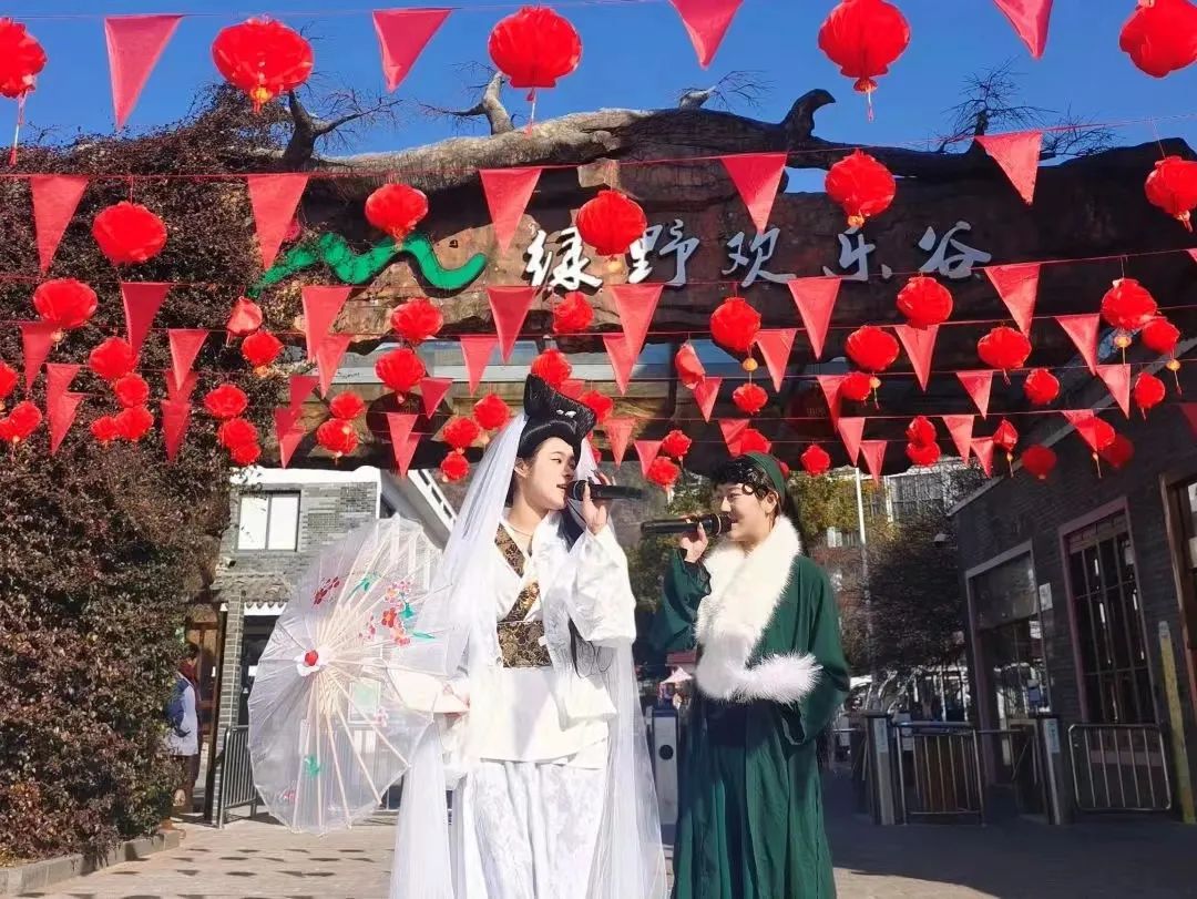 绿野山居(绿野自得谷)举办“金蛇迎春福满绿野”新春系列步履,包括画蛇添福(描福字)、五福寻宝、喜乐年市、墨香迎春(写对联)、古风游园等,增添新春氛围,擢升搭客的参与度和体验感。