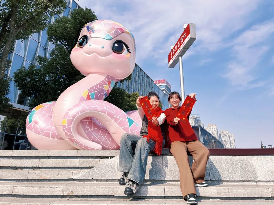 开启了巳蛇新春嘉年华,高达4米的“滩”吃蛇,身披颜色斑斓的“鳞片”,亮相三江口;长达二十余米的祝贺长廊给民众带去满满新春祝福,同期,年味皆备的好巳火食市集,更是营造出浓厚新春氛围。