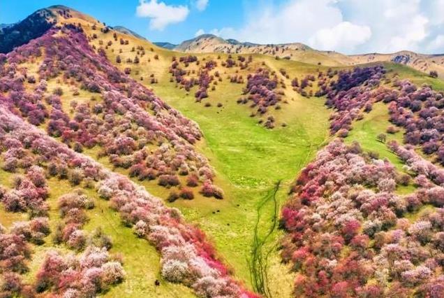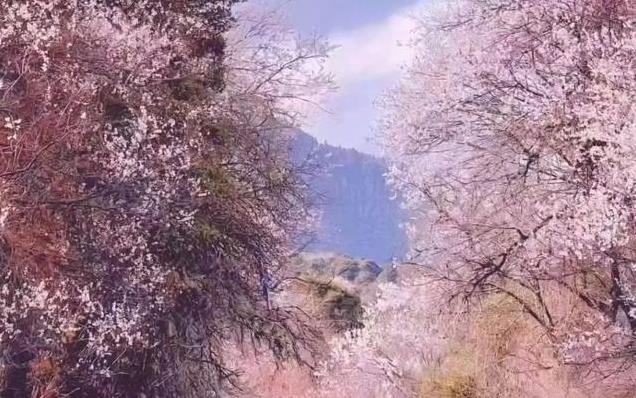 每年四月中旬,向阳初升,杏花悄然绽放,粉白交错的花海在山间铺伸开来,宛如瑶池。搭客源远流长,在此踏春赏杏花,尽激情受这片西域秘境的专有魔力。