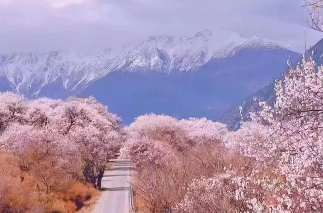 林芝地处西藏东南部,海拔较低,春天因桃花的怒放而显得特别平和。三四月间,漫天匝地的桃花竞相绽放,与雪山、蓝天、碧草情味横生,宛如一幅绝好意思画卷。