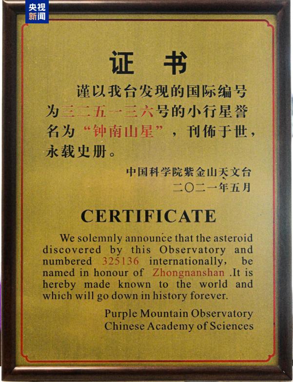 10月11日,“钟南山星”定名典礼在横琴粤澳深度配合区举行。经外洋小行星中心定名委员会批准,中国科学院紫金山天文台发现的、外洋编号为325136号的小行星,被讲求定名为“钟南山星”。
