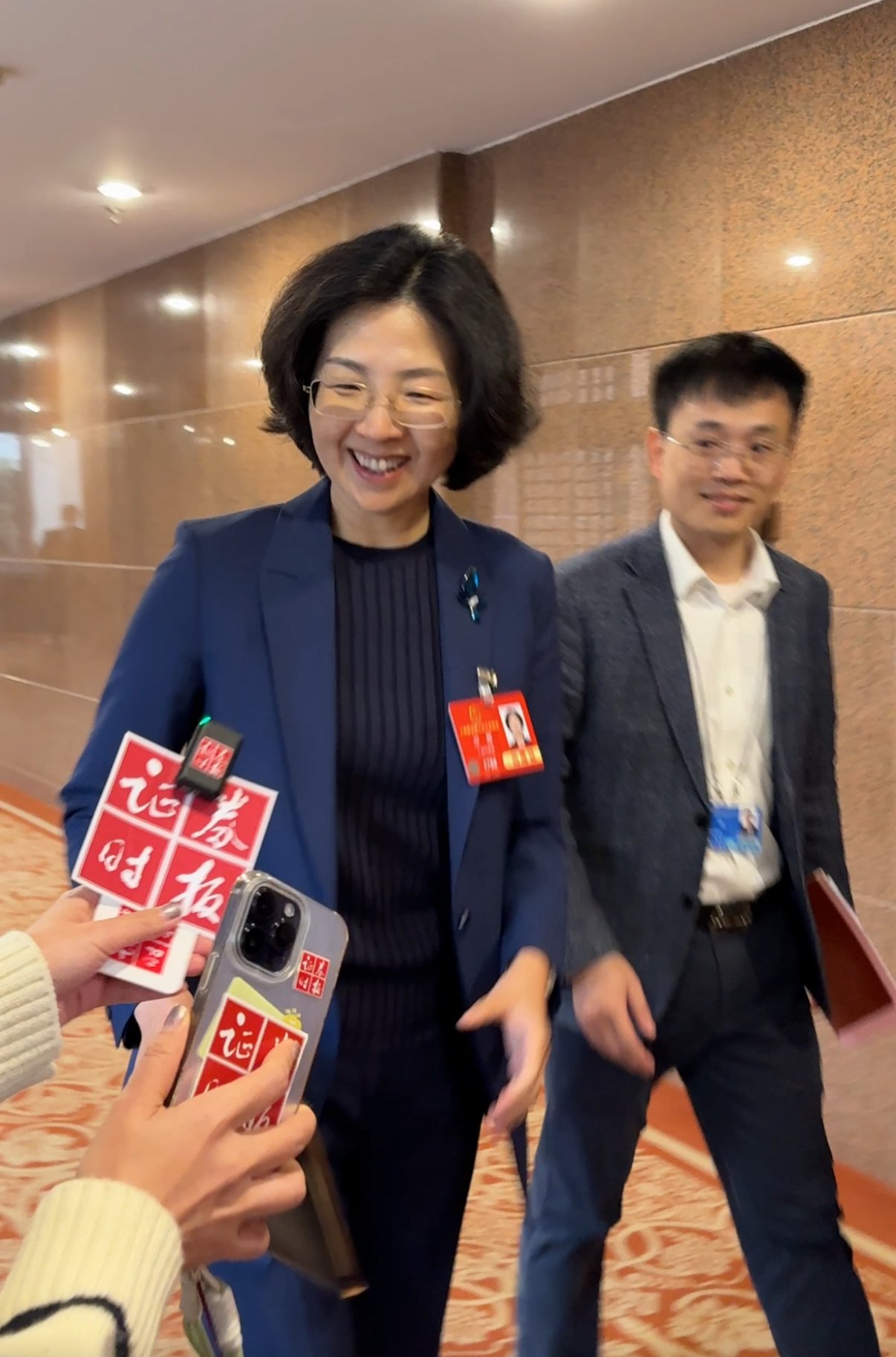 宇宙东谈主大代表、深交所党委文告、理事长沙雁3月3日现身东谈主大广东团驻地。