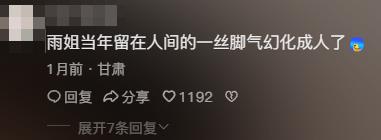 视频中的“雨姐”,正本只是个在抖音上共享日常的平日东谈主,也拍摄过一些简便的搞笑视频。本年十月,也就是雨姐以赛博歌姬身份再行爆火之时,瞬息有网友发现此东谈主颇有故东谈主之姿,便在驳斥区放出了对比图片。