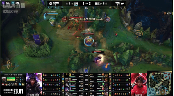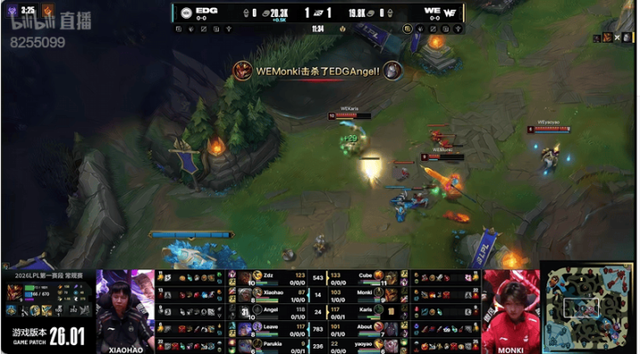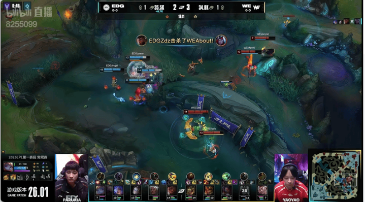 26分钟:EDG先手拿下大龙反被赶来的WE打出零换四