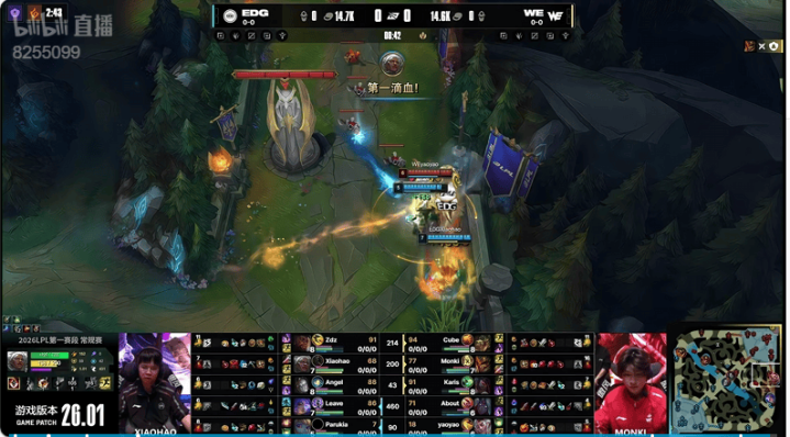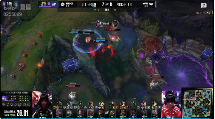 虎扑01月16日讯EDG蓝色方,WE红色方