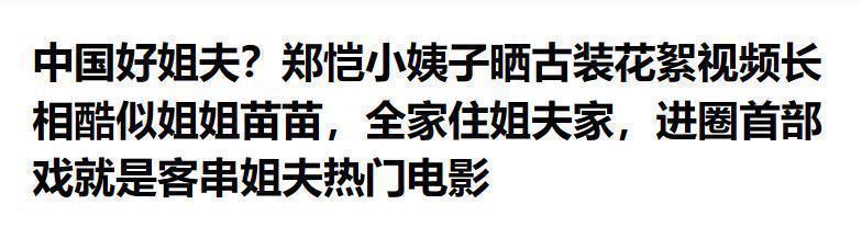 参考文件:郑恺配头穿玄色情侣装牵手同业 苗苗产女后体态好纤瘦.环球网 中国好姐夫?郑恺小姨子晒古装花絮视频长相神似姐姐苗苗,全家住姐夫家,进圈首部戏即是客串姐夫热点电影.九派新闻