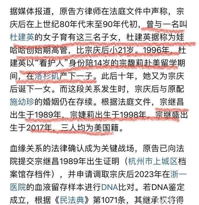 淌若放在一般家庭,父亲在外找了小三,生了三个孩子,老迈老二齐还是娶妻,况兼很豪阔,独生嫡女还要不息往私生子女哪里输血,放在谁身上齐是无法蚁合和谅解的。 三个好意思国籍私生子的母亲是杜建英,这个女子材干亦然很强硬的,和宗庆后全部创业,把娃哈哈作念大,自后东说念主离开了,可是股份等少许不少。
