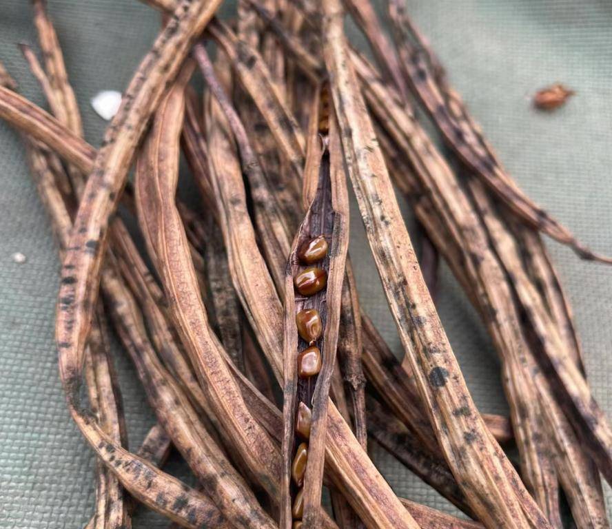 果实的纯熟期在9-10月份,荚果线形,呈羊角状,略报复。内部有10来粒种子,呈菱形,光滑油亮。在宋代苏颂著写的《本草图经》中就有收录决明子这栽植物,其中还纪录了决明子的时势特征。苏颂说:“决明子夏天生苗,宽绰约三四尺(1米2傍边),根带点紫色。叶子像苜蓿然而要比苜蓿大,7月份的时候开黄花,种子像绿豆,然而要比豆科尖锐些,棱角分明”,说的和咱们今天讲到的决明子一致。
