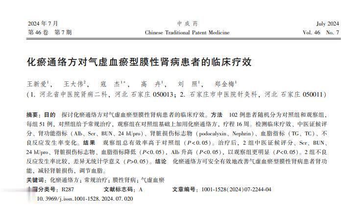 参考贵府[1]王新爱.化瘀通络方对气虚血瘀型膜性肾病患者的临床疗效, 中成药体育游戏app平台, 2024-07-20
