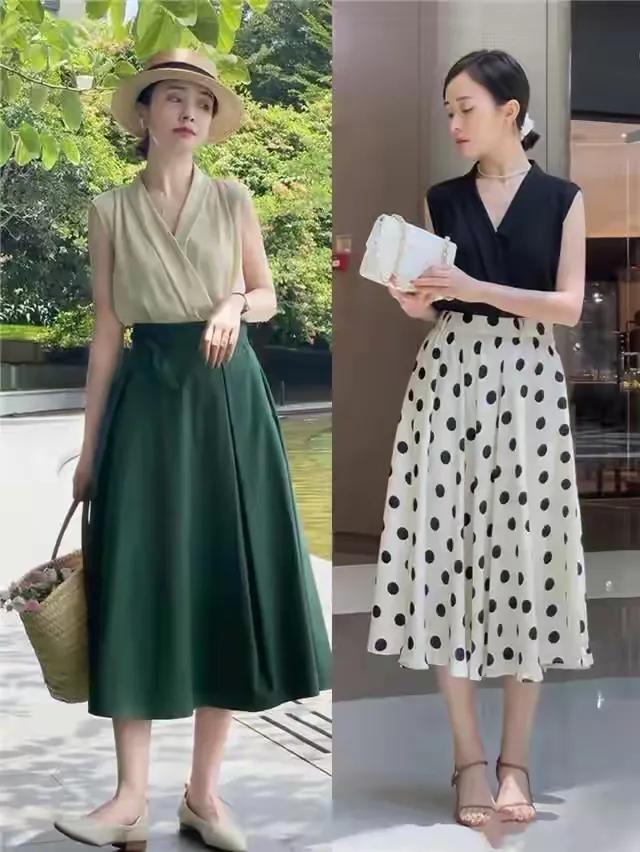在这也热的,夏天我们可以经受底下这种无袖的薄款衬衫上衣来搭配上高腰收腰款的a字半身裙和伞状半身裙,穿的工夫像底下这位达东说念主相似,径直把衬衫的衣角塞进裙子内部就能很好的提高腰线,脚上径直经受皮质的粗跟单鞋,高跟凉鞋就行。