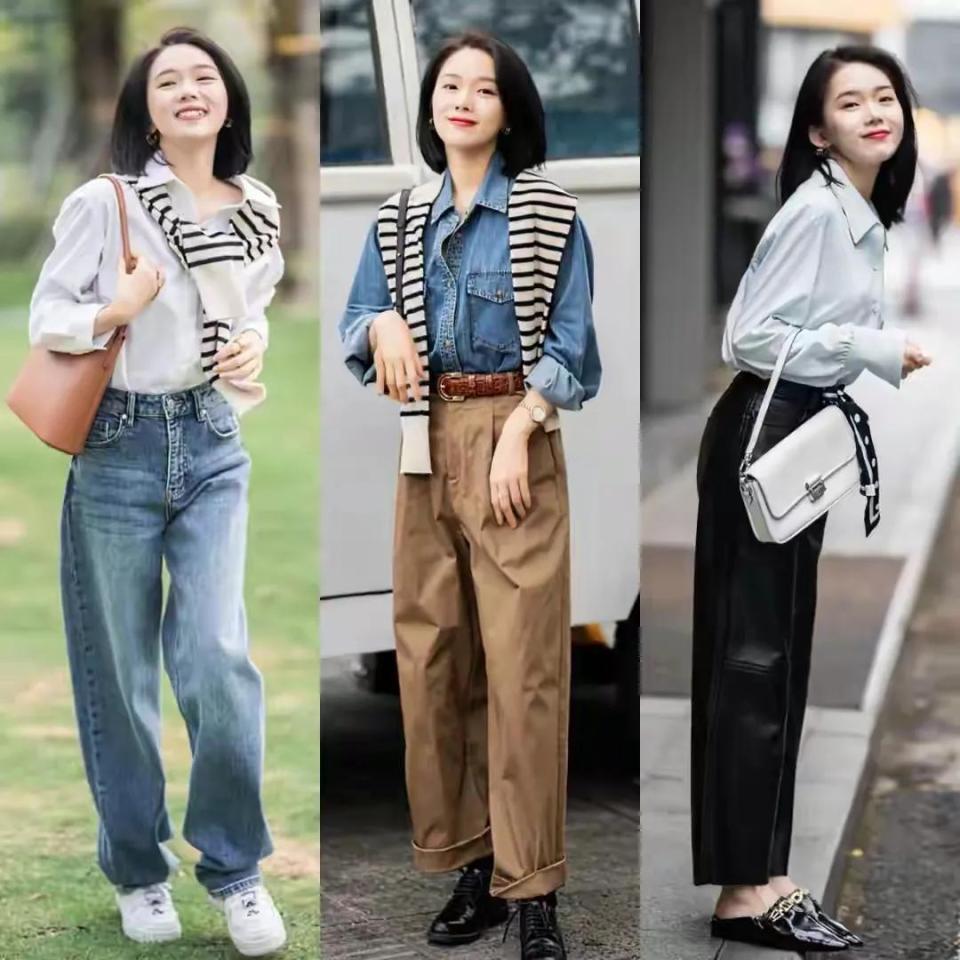 还不如换成右边的这条牛仔直筒阔腿裤,这种裤子不论是梨形骸格或者是苹果型体格,以至是h型体格,穿出来的成果齐可以像这位达东说念主相似,从简前锋,遮肉显瘦。