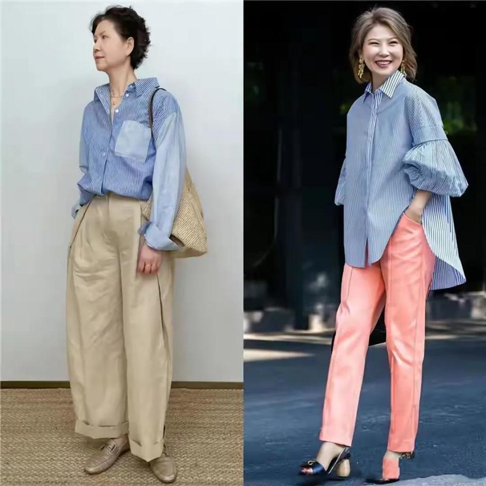 东说念主到中年开云(中国)kaiyun网页版登录入口开云体育,体格就容易发福发胖,这工夫思要快速的变得愈加有气质,经受允洽我方的衣裳单品,还有颜色至关弥留,举例底下这两位达东说念主的穿衣打扮示范,一个是用灯笼袖的浅蓝色衬衫上衣搭配上白色的阔腿裤,固然她体格比例有点发福发胖,但这么穿搭也能达到一个显瘦的成果。