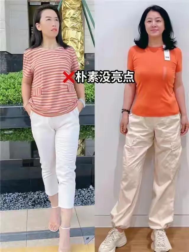 在这个夏令,一定要少穿T恤,我们就看底下这种条纹的短袖T恤,或者是南瓜黄的短袖T恤,这种衣裳单品看起来贵,朴素莫得亮点,再搭配上容易起褶皱的长裤,扫数东说念主压根就莫得前锋感。